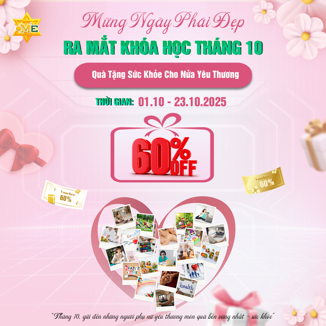 Để lan tỏa thông điệp này đến nhiều người hơn, OM’E Việt Nam dành tặng ưu đãi khoá học lên đến 60% khi mua kèm khoá học ra mắt. Đừng bỏ lỡ cơ hội để sở hữu món quà sức khỏe này với mức giá cực kỳ ưu đãi.